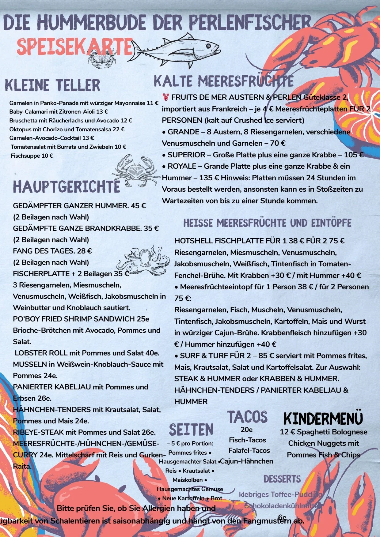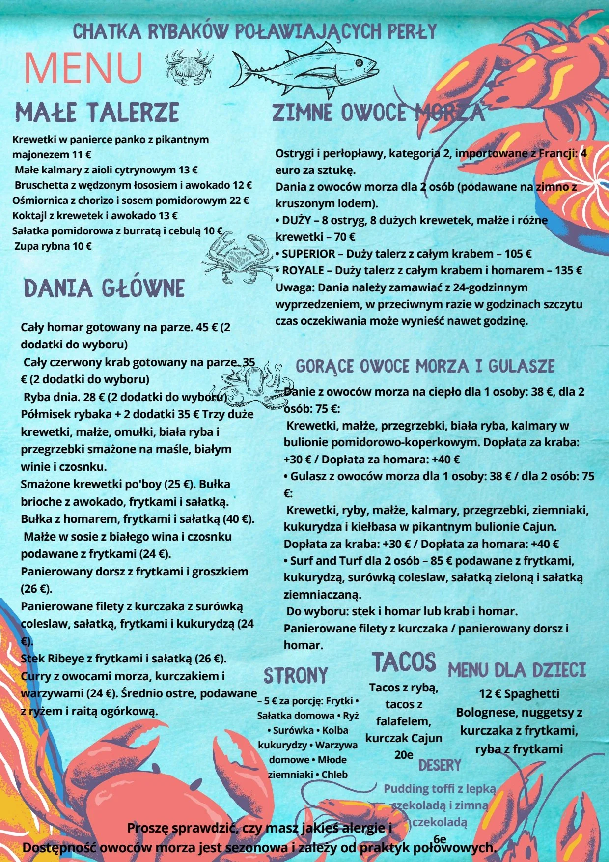 we also specialise in fresh lobster and crab